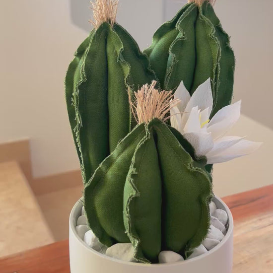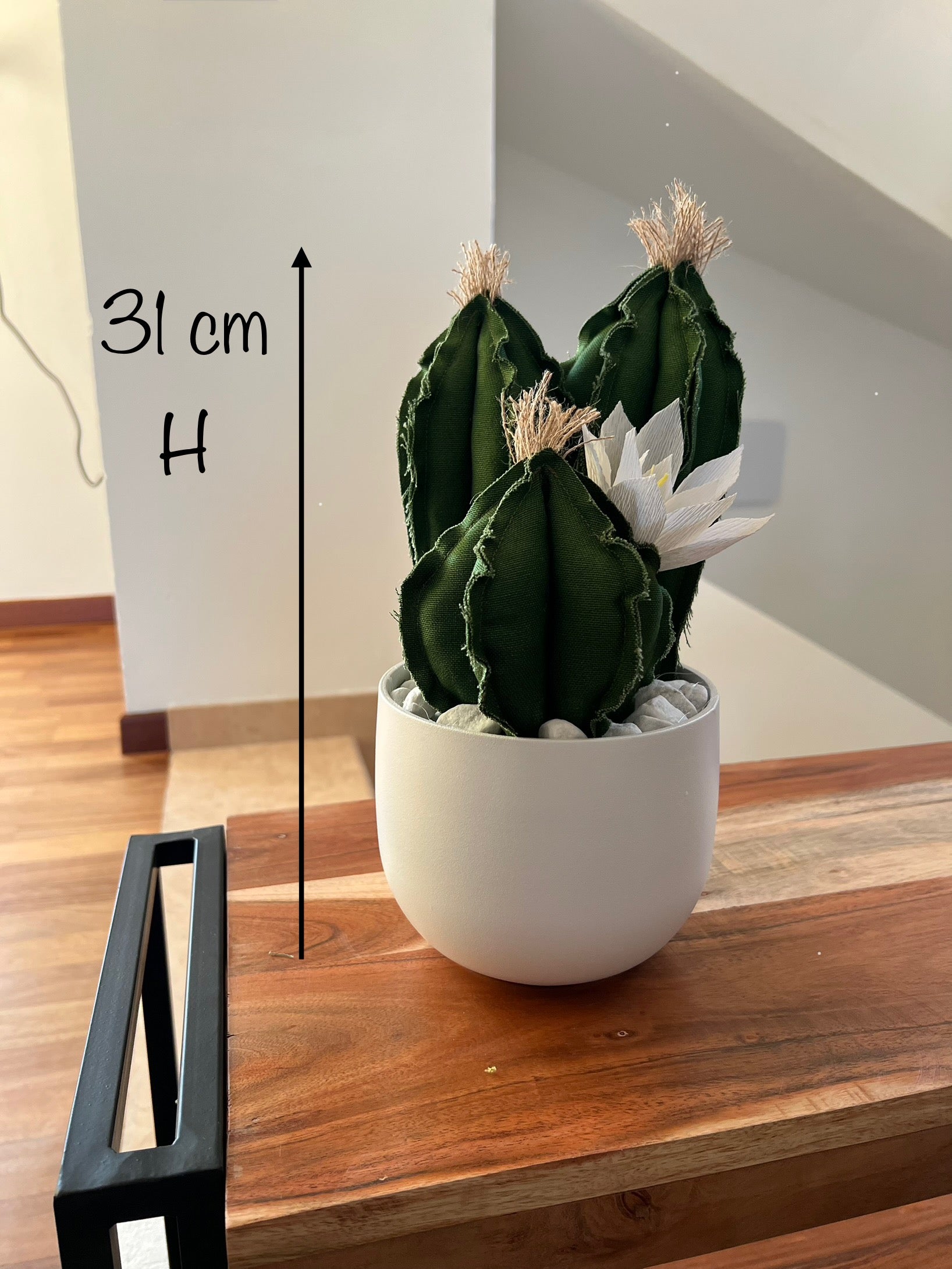 Opuntia in light green cotton with fruits, height 56 ​​cm, complete with ceramic vase
