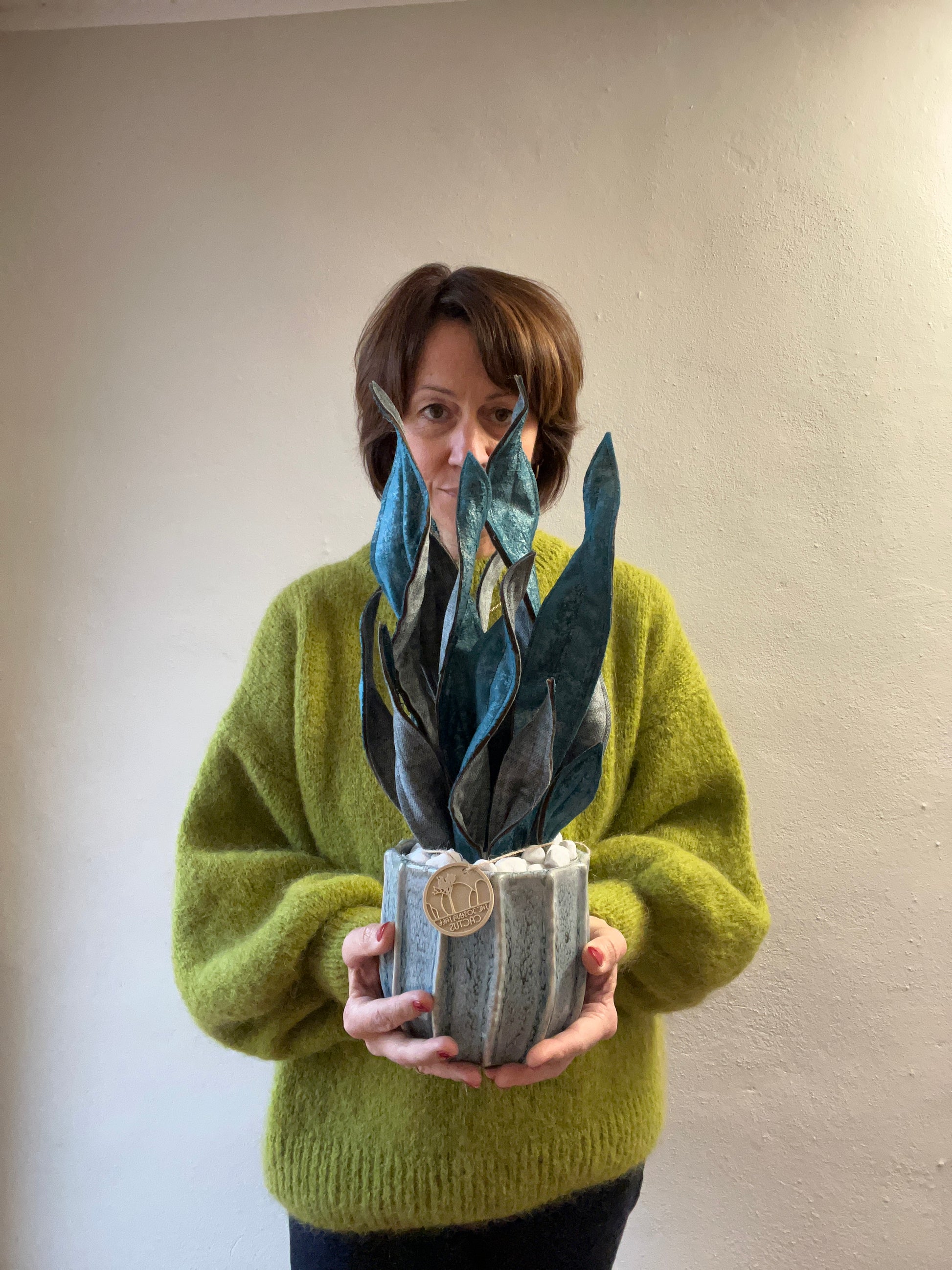 Handmade plant in suede fabric (eco suede), complete with pot.