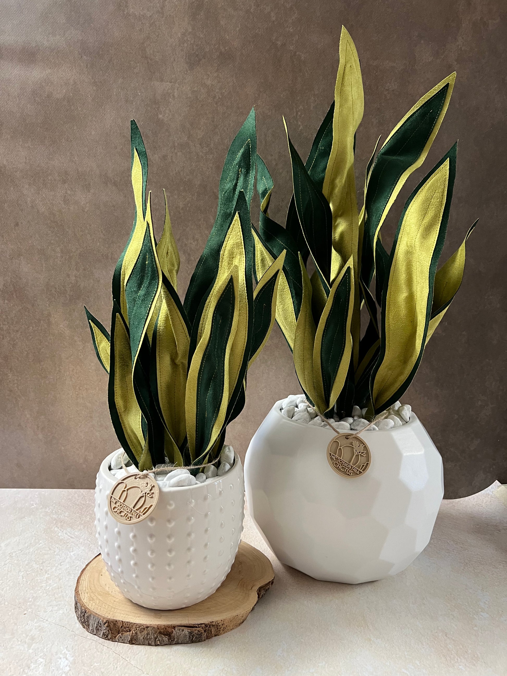 Handmade plant in suede fabric (eco suede), complete with pot.