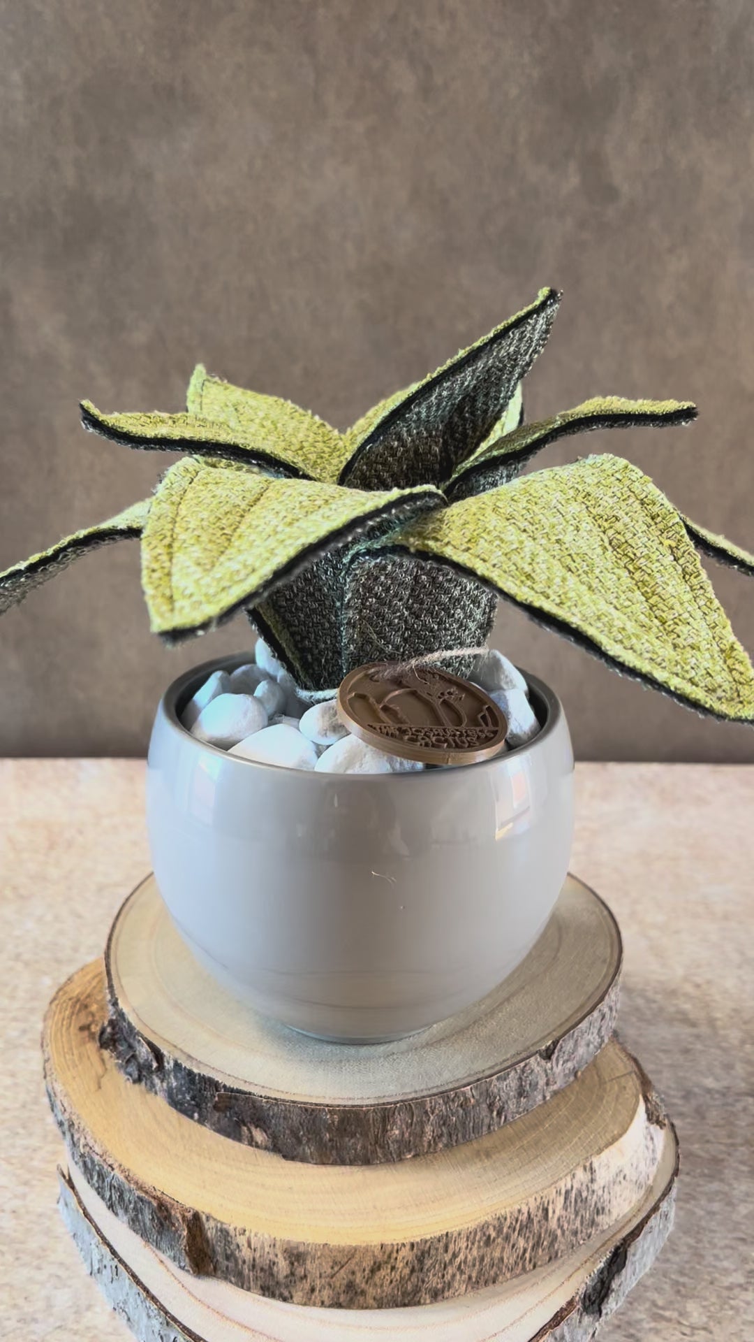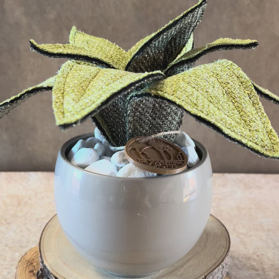 Agave in cotone grezzo verde e grigioverde, versione mini (24 cm altezza approssimativa).