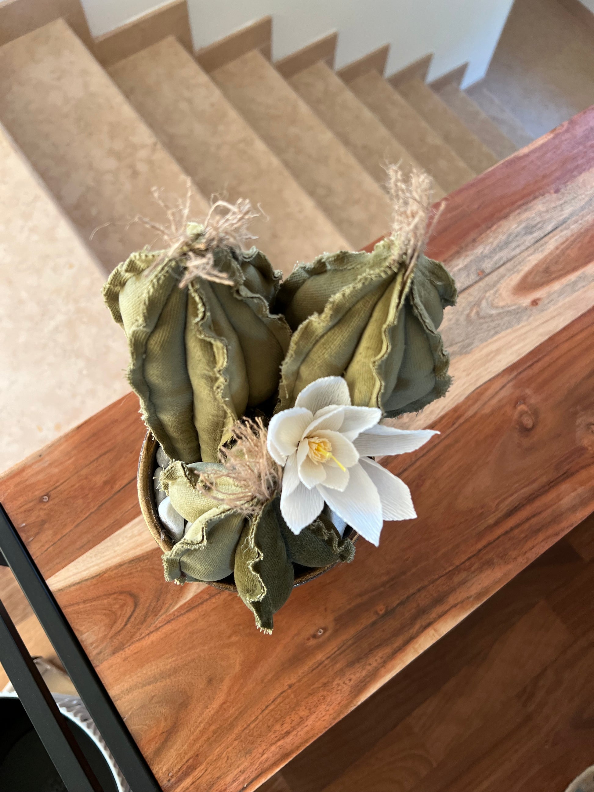 Ogni creazione nasce da tessuti scelti con cura, spesso recuperati, trasformati in piccoli pezzi di natura che durano nel tempo.