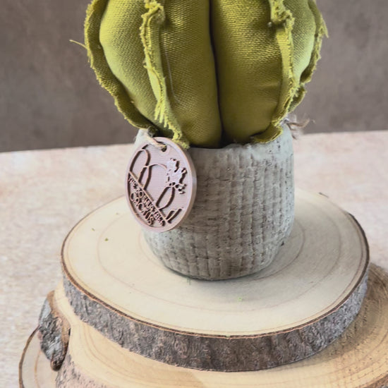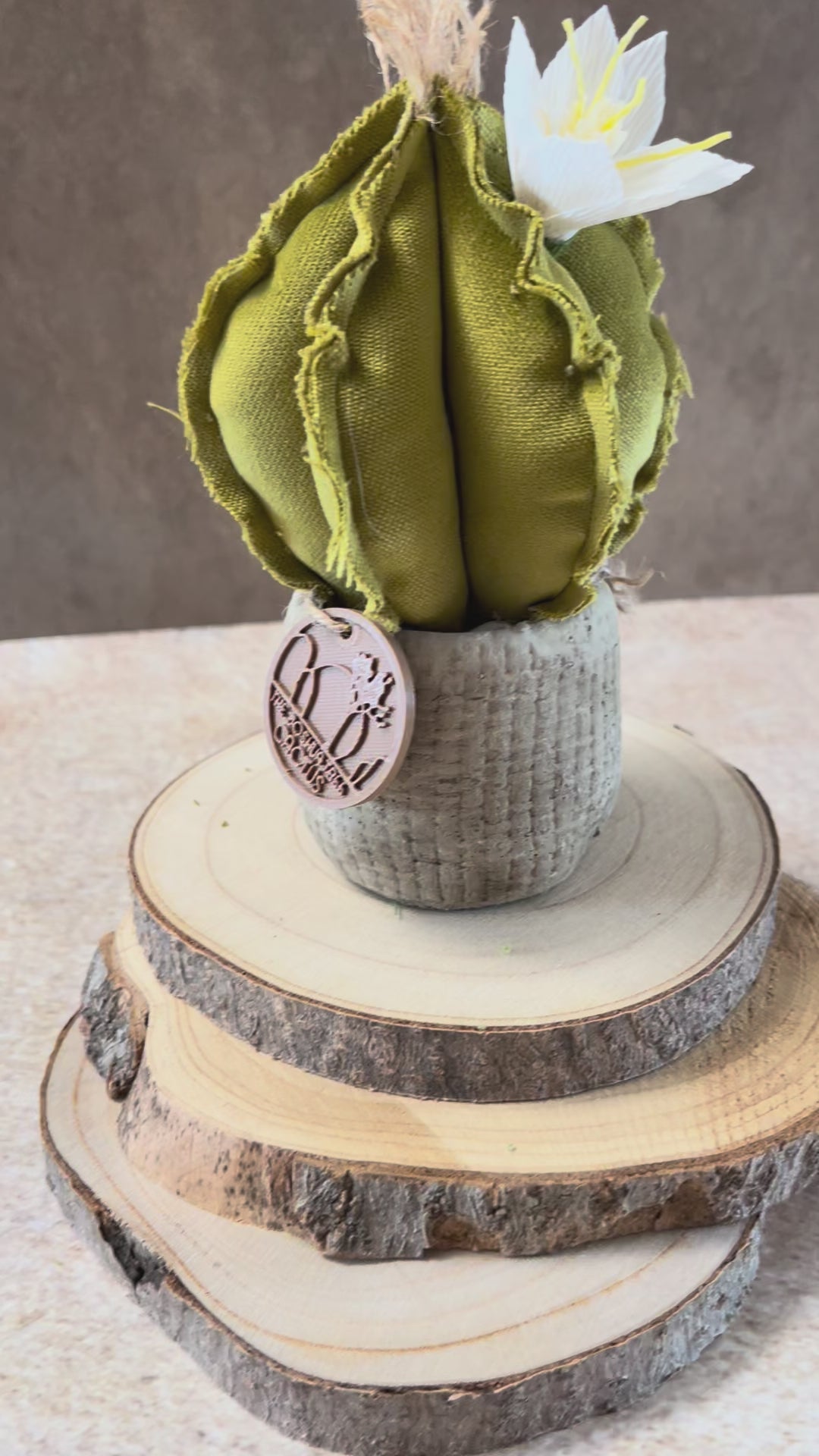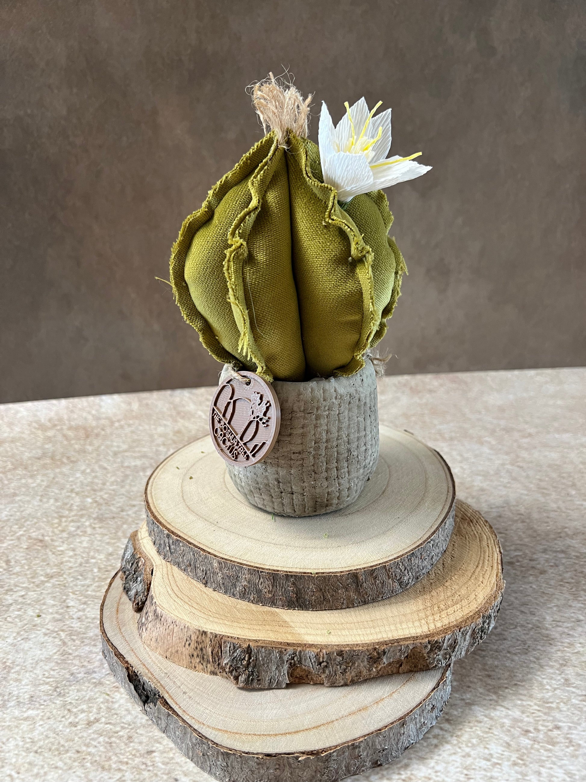 Mini Cactus in velluto verde, vaso in ceramica opaca simil cemento.